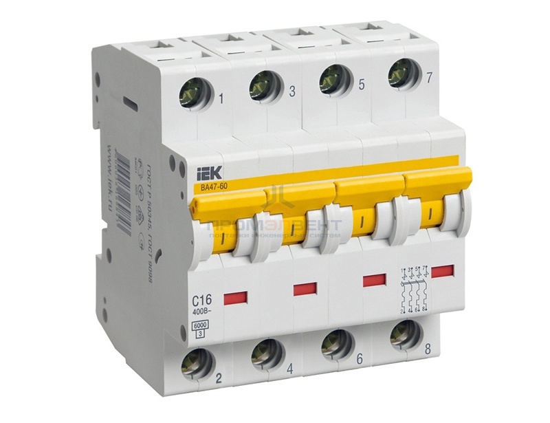 Автоматические выключатели ВА47-60 соответствуют стандартам ГОСТ Р 50345, ТУ 3421-035-18461115-2010