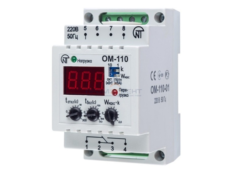 В ОМ-110 для измерения тока используется встроенный трасформатор тока. ОМ-110 позволяет контролировать значение мощности и состояние нагрузки с помощью светодиодных индикаторов расположенных на лицевой панели.